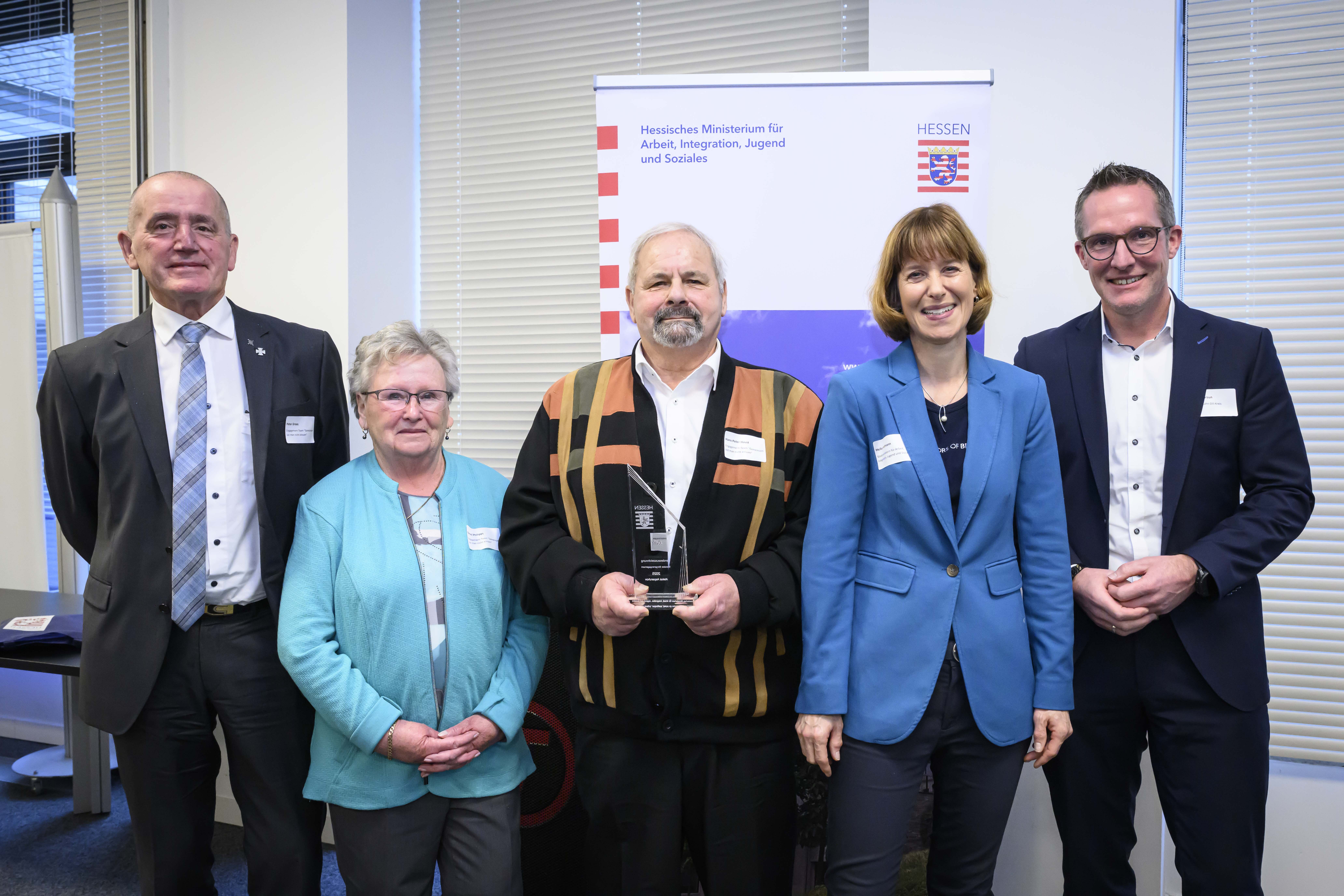 Das Engagement-Team von „Gemeinsam isst man nicht einsam“ aus Driedorf: Peter Groos, Bärbel Philipps, Hans-Peter Haust, Frau Staatsministerin und Carsten Braun (Landrat Lahn-Dill-Kreis)